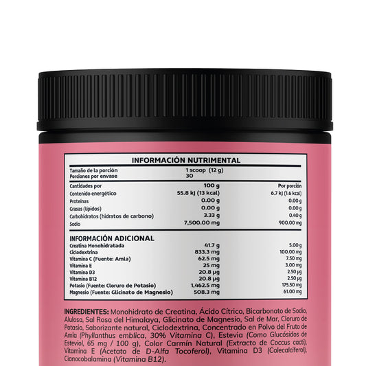 Creatina Monohidratada con Electrolitos y Ciclodextrina | 30 Porciones | Sabor Frutos RojosPrecio habitual $ 479.00Precio habitualPrecio unitario / por-