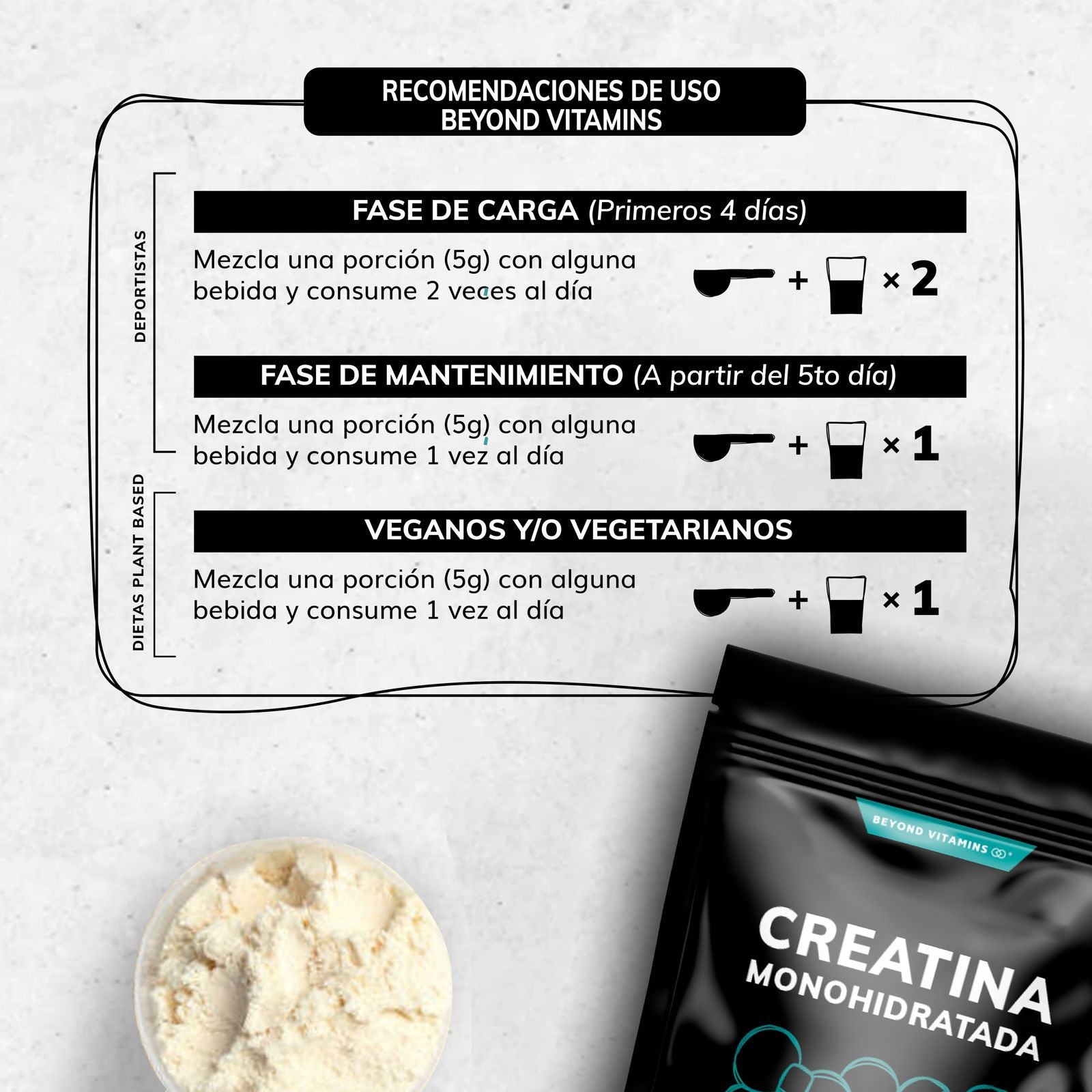 La Creatina Monohidratada Beyond Vitamins es un suplemento alimenticio que contiene Creatina Monohidratada Micronizada.